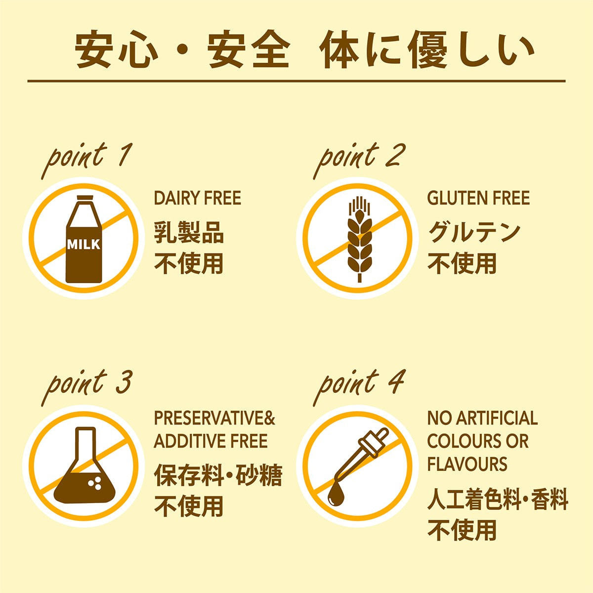 フルッテートのこだわりは「美味しい、安心、安全」です。世の中には食品の裏面ラベルの原材料に、合成着色料や合成香料、よくわからない名前などがずらりと並んだものが溢れかえっています。